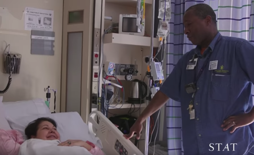 Lindon Beckford ha trabajado durante 30 años en un hospital de EE UU. Su trabajo consiste en trasladar a las personas a las salas de operaciones o de los quirófanos a la habitación donde se encuentran ingresadas.
