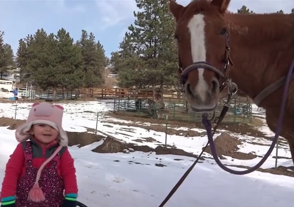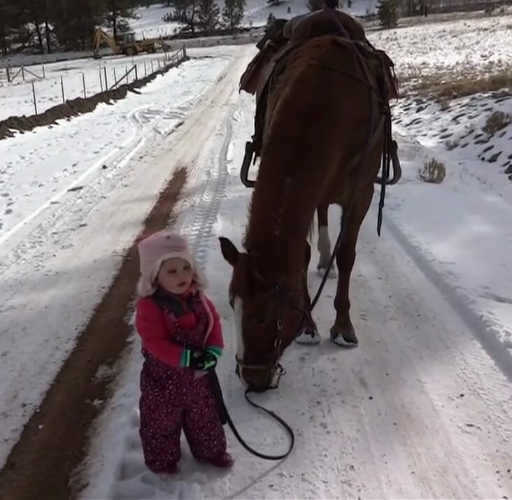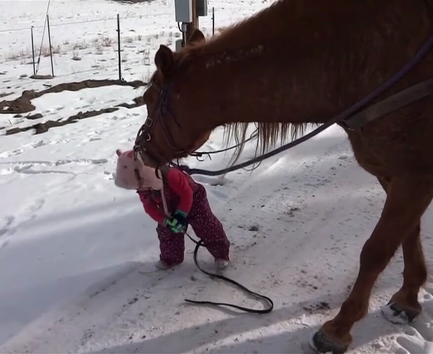 Esta pequeña se llama Emma. Todavía era una niña cuando hace cuatro años salió a dar un paseo invernal con su padre, detrás de la videocámara, y su mejor amigo – el caballo Cinnamon (canela).